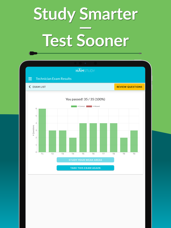 • HamStudy's intelligent study algorithms work with you to ensure you learn the questions, tracking your progress and adjusting the pace to keep you challenged but not frustrated.