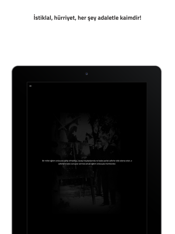 Vatanı için hayatını veren ulu önder “Beni görmek demek mutlaka yüzümü görmek değildir. Benim fikirlerimi, benim duygularımı anlıyorsanız ve hissediyorsanız bu kafidir.” demişti. Özgürlüğün, bağımsızlığın, egemenliğin, cumhuriyet ve devrimlerin yılmaz bekçileri olarak onun fikirlerini ve sözlerini rehber edinmek en kutsal vazifemizdir. Bu doğrultuda O'nun sözleri bu uyguluma ile kullanıcılara sunulmuş ve Ata'mıza karşı olan vazifemize yardımcı olunması amaçlanmıştır.
