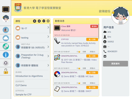 iClass 是操作簡易及多元化的雲端電子學習平台,老師們除了可以方便地收發作業,更能使用小測功能,並即時閲覽學生的分析報告,有效地評估學生的學習進度。