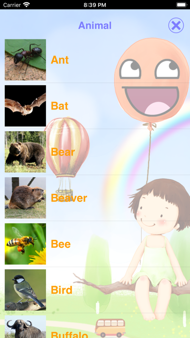 - Over 780 objects. 15 categories include: A-Z & Number, Color, Animal, Toy, Food, Fruit & Vegetable, Musical Instrument, Sport, Clothing, Date, Transport, Furniture, Country, Weather.