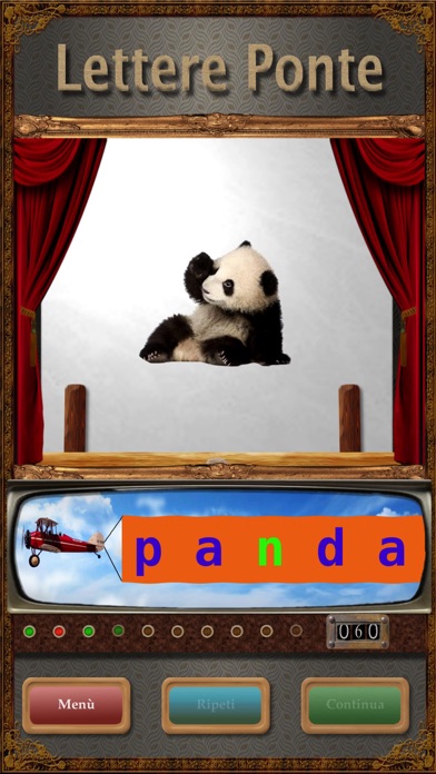 L’app propone semplici esercizi di ortografia in cui è richiesto il completamento di parole contenenti lettere ponte* e sillabe inverse*.