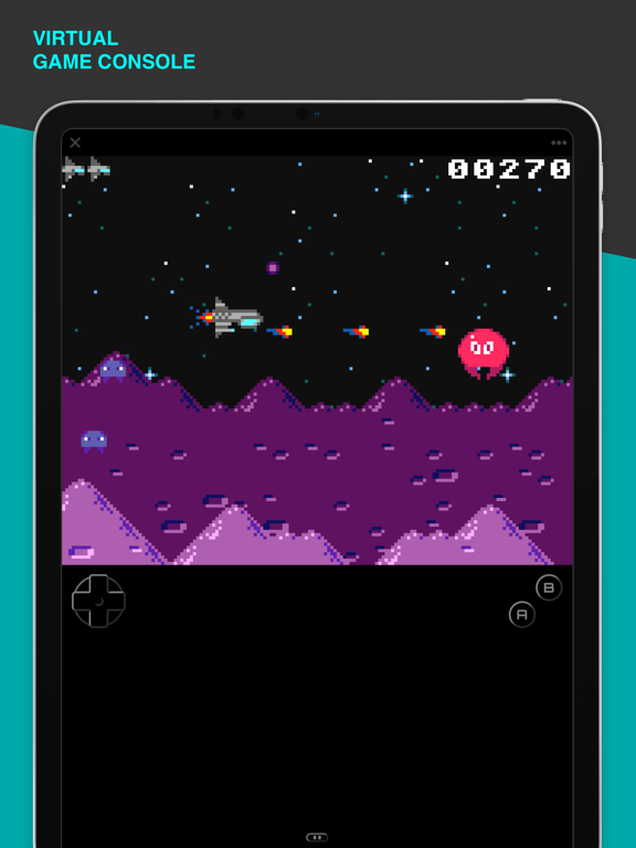 Imagine LowRes NX as a handheld game console with a d-pad, two action buttons and a little rubber keyboard below a slidable touchscreen. LowRes NX was inspired by real 8- and 16-bit systems and simulates chips for graphics, sound and I/O, which actually work like classic hardware. It supports hardware sprites as well as hardware parallax scrolling, and even offers vertical blank and raster interrupts to create authentic retro effects.