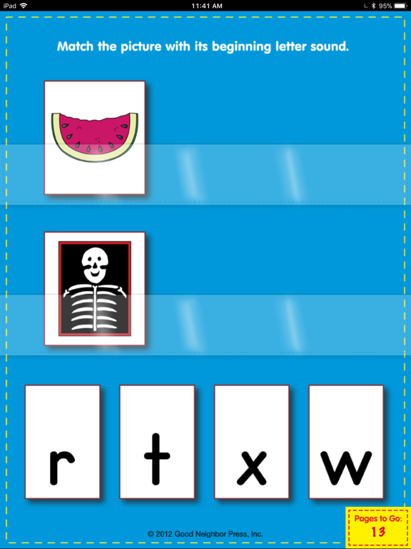 Developed for your iPad, this easy game will teach and reinforce letter sounds and phonics skills. Game play is based on the popular pocket charts used in classrooms around the world. Beginning Letter Sounds requires 3-5 minutes for a young learner to complete, making this iPad app ideal for students with short attention spans or those requiring highly visual or tactile learning experiences. Additionally, the activities have been uniquely designed to lock and play only in the portrait mode to simplify game play and eliminate an orientation switch if young learners jostle the iPad while playing.