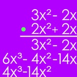With the Polynomial Multiplication app you can practice multiplying polynomials with a step-by-step method. And you can get additional help at each step.