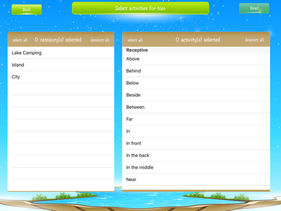 The Prepositions Journey app was developed by a certified speech and language pathologist to aid practice with early/common prepositions. Children will have fun practicing prepositions with three animals who appear in three different colorful, animated scenes: camping, island, and city.
