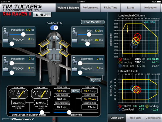 With the Gyronimo Performance Pad you can calculate weight & balance, performance and navigation data in just a few seconds! It is designed for one specific aircraft, the Robinson R44 Raven I / Astro, and contains all necessary flight and performance data.