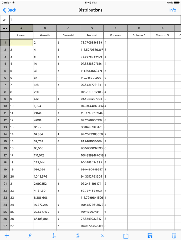 - Spreadsheet includes functions for trigonometry, table & cell access, maths, statistics, strings, logical, date, time, financial and matrix manipulations (>180 in total). Resize cells, zoom and swipe to scroll, file saving/opening and emailing. Series and sorting functions. Quick sum, average, min, max. Intuitive cell editing and selection.