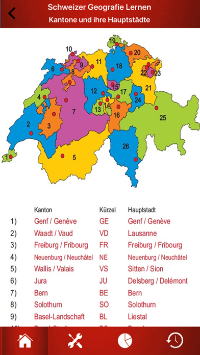 Schweiz Geographie ist ein Erdkunde Quiz-Spiel, das dir hilft, alles über die schweizer - Kantone,Karten, Fahnen, Hauptstädte, seen und berge.