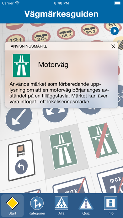 ● Den är nu uppdaterad med de senaste vägmärkena och tillhörande beskrivningar.