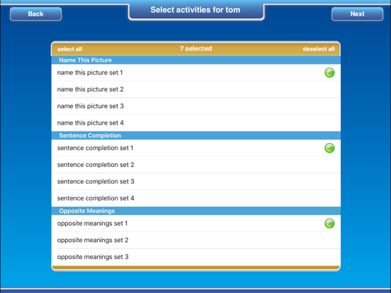 Word Retrieval includes 7 different activity types. (Each activity offers 80 trials, organized into four sets):