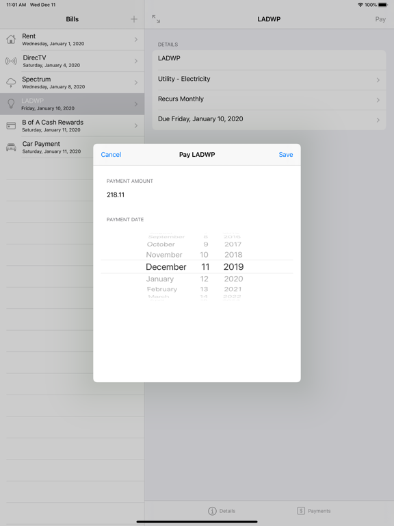Manage your bills and track when they become due and payments are made. Make sure you are never late on paying a bill again.