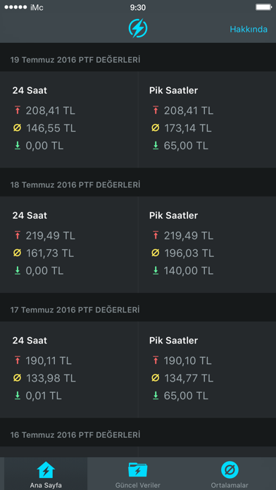 “Elektrik” uygulaması, Türkiye elektrik marketinde oluşan elektrik fiyatlarını takip etmenize yardımcı olur. Saatlik, günlük, aylık elektrik fiyatları en güncel halleriyle görüntülenmektedir. Bir sonraki gün fiyatları açıklandığında Push Notification bildirimleri ile anında haberdar olabilirisiniz.