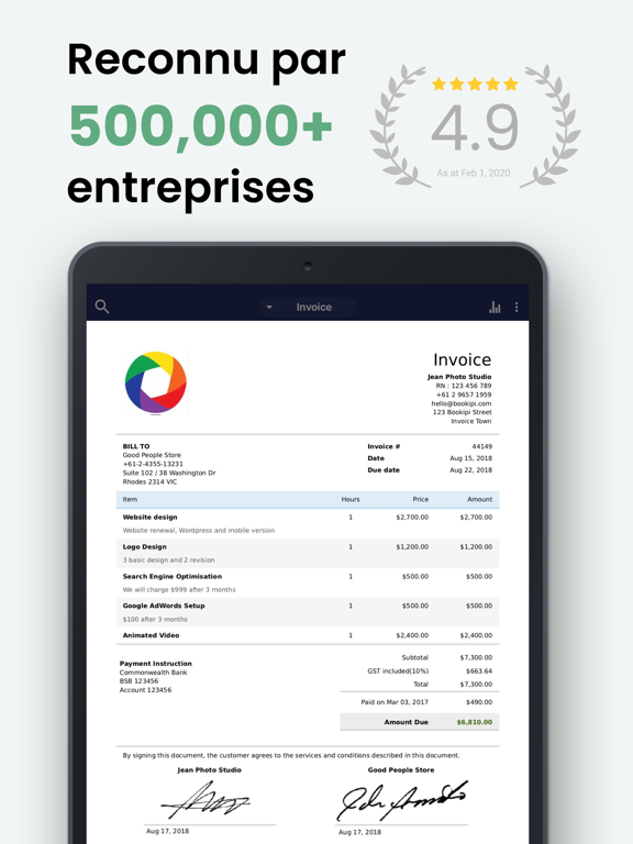 Créateur de factures GRATUIT — Bookipi est l’application de facturation n°1, primée, pour les petites entreprises. Découvrez une façon plus intelligente et plus simple de créer des factures, devis et reçus. Plus de 2 500 000 freelances et entrepreneurs dans le monde nous font confiance.