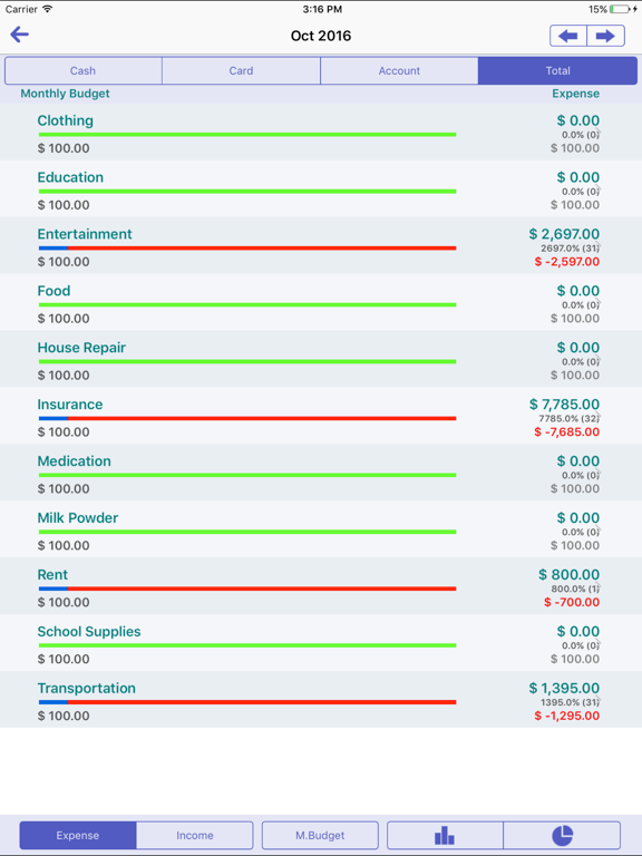 * manage income and expense by category