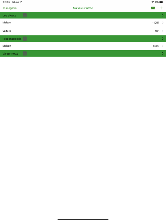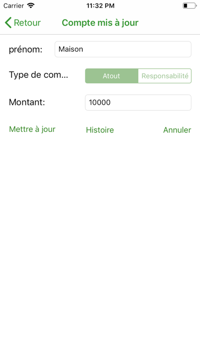 Cette application permet aux utilisateurs de suivre leur valeur nette avec des écrans qui vous permettent de mettre à jour rapidement les informations. Vous pouvez utiliser cette application pour suivre votre argent lorsque vous le dépensez et pour afficher l'historique du compte afin de voir comment le solde a évolué au fil du temps.