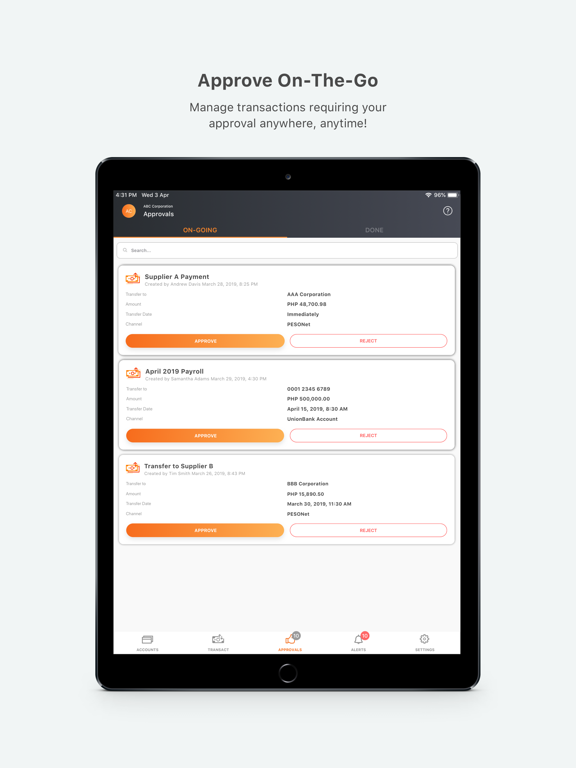 • Approve or reject transactions on-the-go