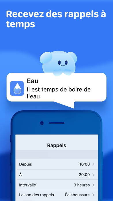 Ce n'est pas une application médicale. Veuillez consulter votre professionnel de la santé si vous comptez l'utiliser à des fins médicales ou pour répondre à des besoins d'hydratation spécifiques.