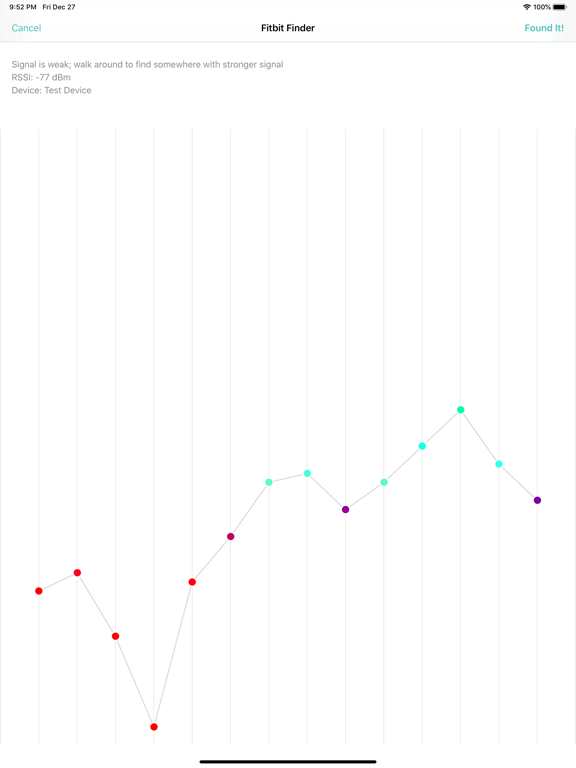 As long as your fitness tracker still has a little power, it generates signal. This app listens to the strength of the signal, and helps you quickly locate the beaming wristband by using Low Pass Filtering and Maximum Likelihood algorithm.