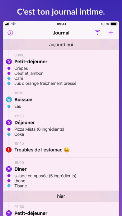 Foody est votre journal personnel pour garder une trace de votre nourriture et des symptômes que vous pourriez en ressentir. Une fois utilisé pendant quelques jours, Foody vous permet d'analyser votre alimentation et vos symptômes pour vous aider à comprendre votre santé. Plus vous enregistrez, mieux Foody peut vous aider à l'analyser. C'est pourquoi il a été conçu en mettant l'accent sur la facilité d'utilisation et la simplicité plutôt que sur des formulaires compliqués.