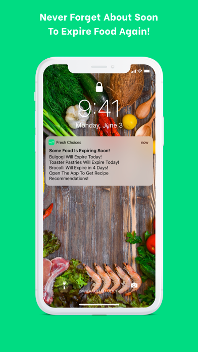 Fresh Choices notifies you when your food is going to expire so you can reduce waste, save money and ensure your food is safe to eat!