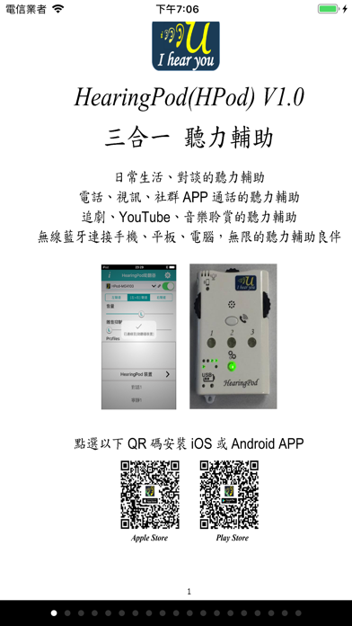 HearingPod App旨在控制和調整HearingPod音訊盒上的參數和設置。