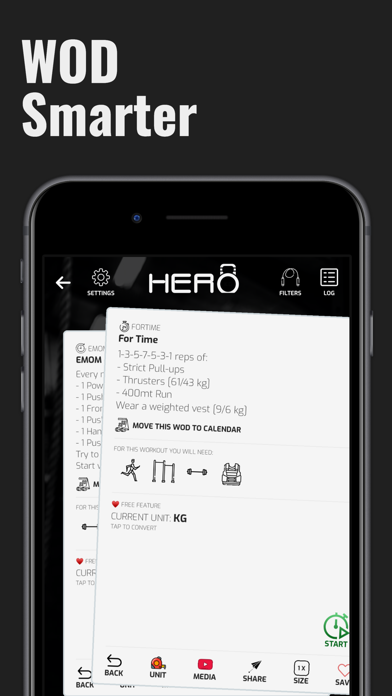 - Track your time, reps, rounds or weights over the time for every WOD with our WOD Tracker