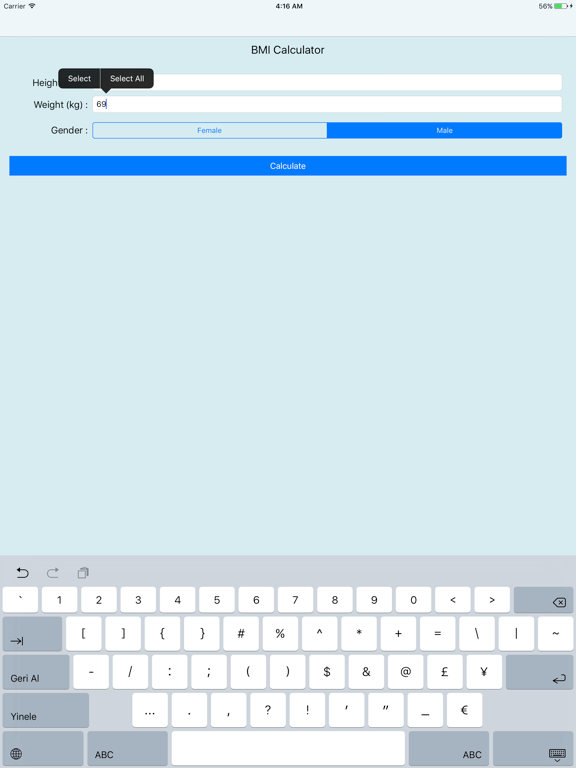 Tek yapmanız gereken cinsiyet seçip boy (cm) ile kilonuzu (kg) yazarak HESAPLA butonuna dokunmak.