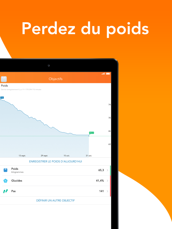 • Planification des repas et des objectifs – les objectifs de repas vous aident à calculer la quantité de calories requise pour atteindre votre objectif. Grâce à la planification des repas, vous pouvez modifier le nom des repas et des collations pour un archivage précis.