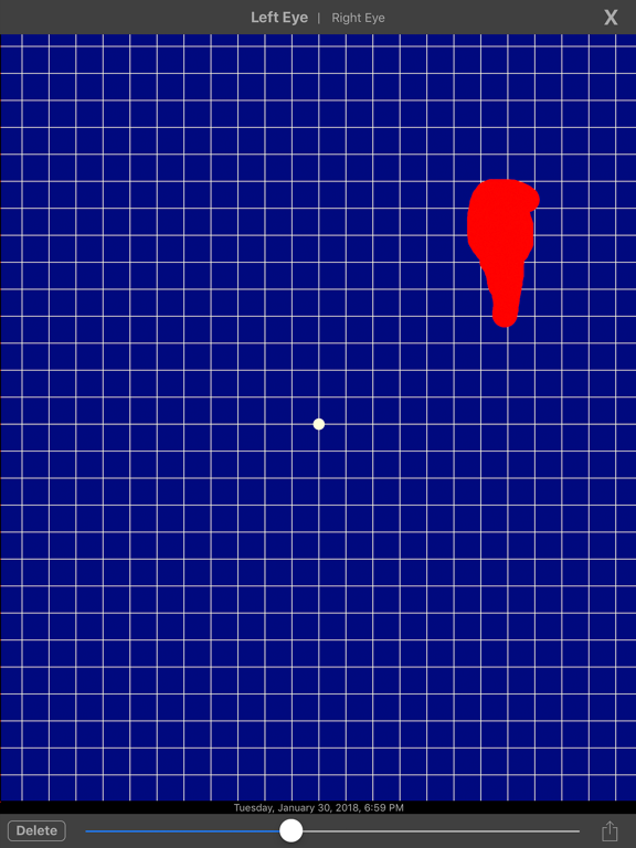 • It is interactive - allowing you to record the area of distortion by touching the screen. The recorded image is saved with date and time so you can show it to your doctor, as well as compare to previous images to look for any changes.