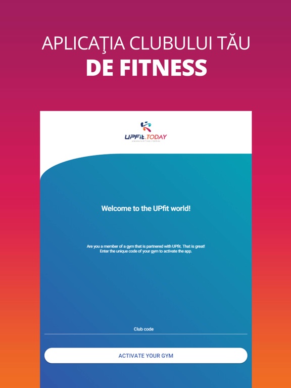 Ask at the reception desk of your gym if it’s an UPfit partner. Each gym that uses UPfit.cloud PRO has a unique activation code that you'll need to log in the app, the first time. That way, you'll have access to all the information you need about your gym.