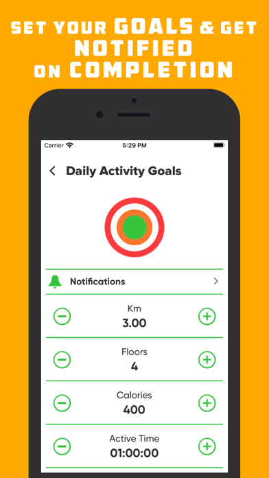 Set Daily goals for Steps, Distance, Floors, Calories Burned, Active time etc