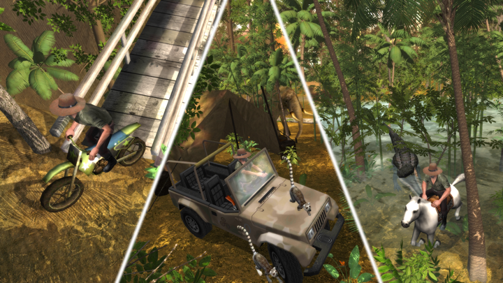 Safari: Evolution a graphiques de haute qualité et gameplay, chasse à pied, 4x4 Jeep, moto, bateau ou cheval - votre fidèle ami - Whistle to Call.