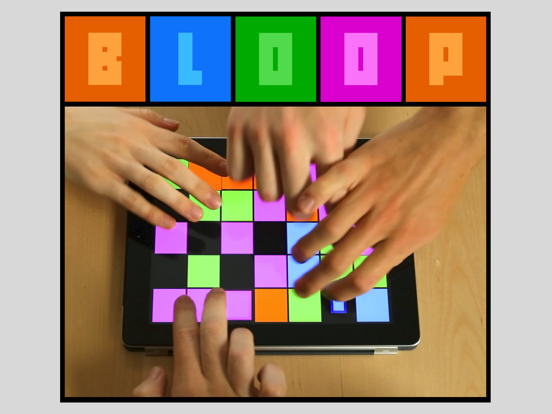 WARNING: HAND COLLISION IMMINENT — Bloop is a fast, frantic touch game for iPad, iPhone and iPod Touch. Two, three, or four players race to tap the most tiles...at the same time! Easy at first, but soon the tiles shrink. Hands collide. Fingers cross. Fireworks!