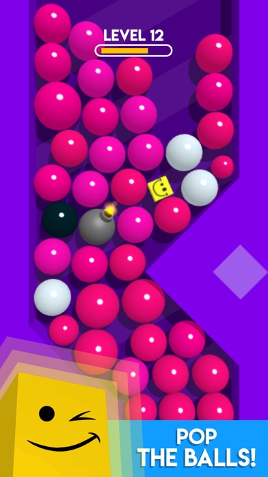 Tap to pop balls and guide the square to the finish line!