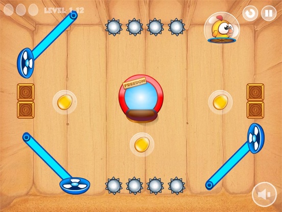 Help a brave bird regain his freedom in a new puzzle game with fun challenges. He is trapped in a bubble and the road is full of dangerous spikes that can hurt him. Use the fans to guide the little one safely to the exit and try to collect all the golden eggs for a high score.