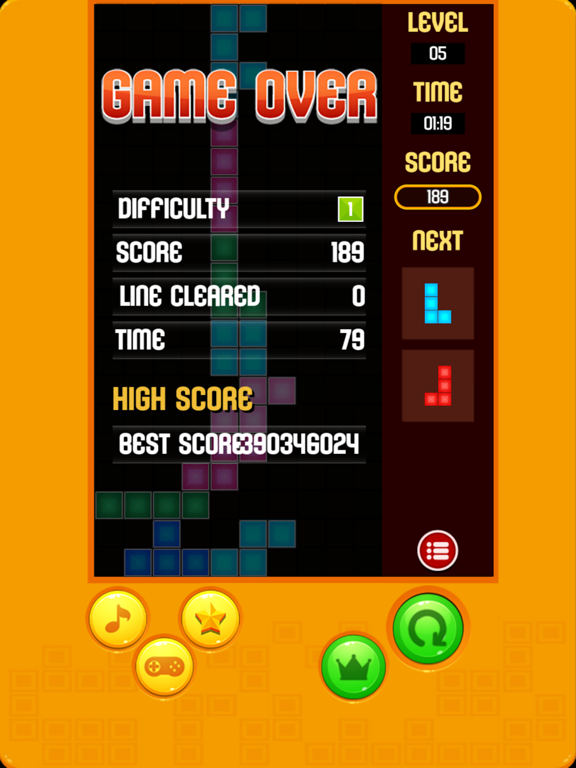 * If you unable to fill lines complete, the Blocks will stack up.