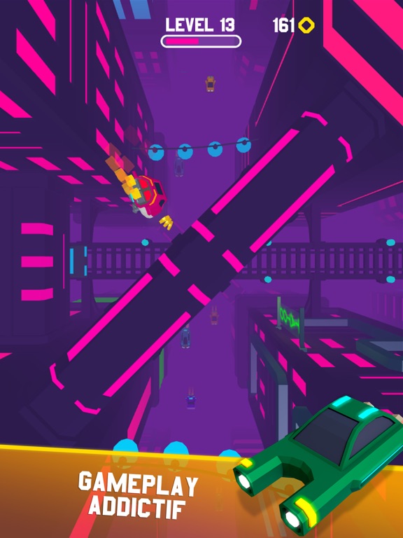 Découvrez la magnifique ville cyberpunk et débloquez des voitures volantes uniques.