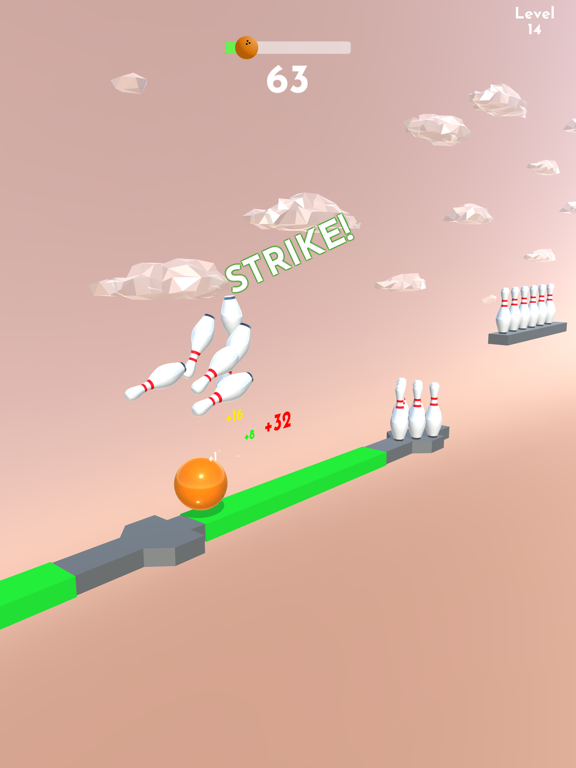 Aim for the pins for strikes and higher scores!