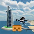 Visite de réalité virtuelle et survol de la ville de Dubaï avec un taxi volant quadricoptère.