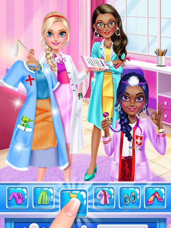 Choose the best nurse outfit to wear to work too! Try on lab coats, colorful scrubs and professional suits! Add comfortable shoes and medical tools like stethoscopes, doctor bags and x-rays. Then head to the hospital to take care of your patients.