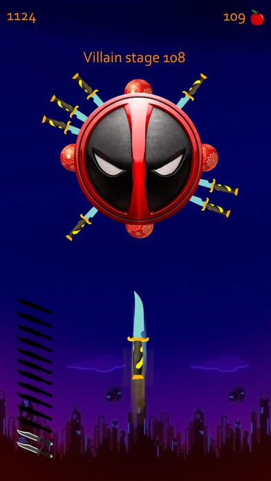 Dans cette cible: Frappez et lancez un jeu de cuirassé appuyez simplement sur l'écran pour lancer les couteaux. C'est le jeu de plateau des couteaux dans lequel les fruits, les légumes et les déserts peuvent tourner dans le sens des aiguilles d'une montre ou dans le sens inverse des aiguilles d'une montre et changer de vitesse à tout moment. Gagnez les pièces pour débloquer les autres couteaux et la planche.