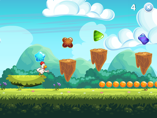 Aider la poule joyeuse à courir à travers le champ, à collecter des gemmes colorées et à surmonter des obstacles.