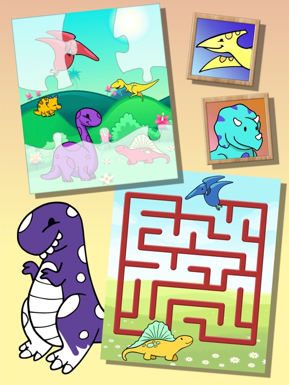 - Puzzle de dinos: Résoudre les énigmes des différents animaux. Un jeu de mémoire pour développer la pensée logique, la perception visuelle et les habiletés psychomotrices.