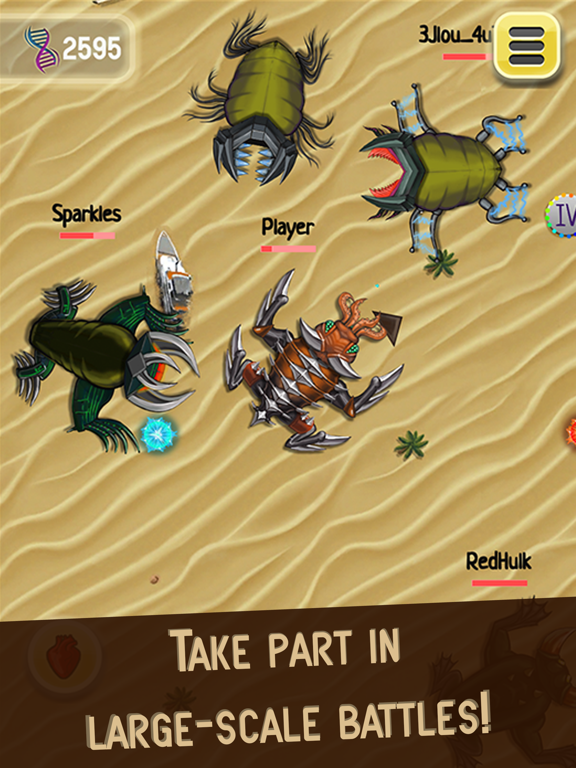 The tactics available for players vary tremendously! Depending on the monster’s evolution stage it can become a tiny weak but very fast monster or, in contrast become a furious, mighty and dangerous monster easily devouring other inhabitants of this tiny universe, showing its power in clashes. It is completely your decision on which skins and parameters to spend the DNA collected in the battles and which evolution path to choose.