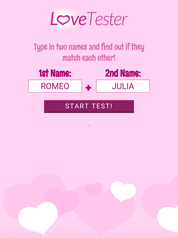 Do you want to know how good you and your crush are going together and if your love will hold forever? Are you soulmates or is it just a friendship? Find it out with this ultimate love tester! Are your hearts beating together and is your love having a chance in the future or will you just stay friends? Type in your names and see how high your chances are for true love!