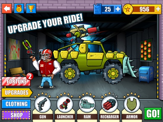 Take on the aliens lasers and blasters with your own trucks rocket launcher as you climb hills and smash through walls. Then start running on foot with your shotgun, killing and smashing aliens. Earn gold coins to upgrade your Car and weapons as well as buy boosters in order to get further each time and beat your previous and friends best distance. Go off road while you drive and run for your life!