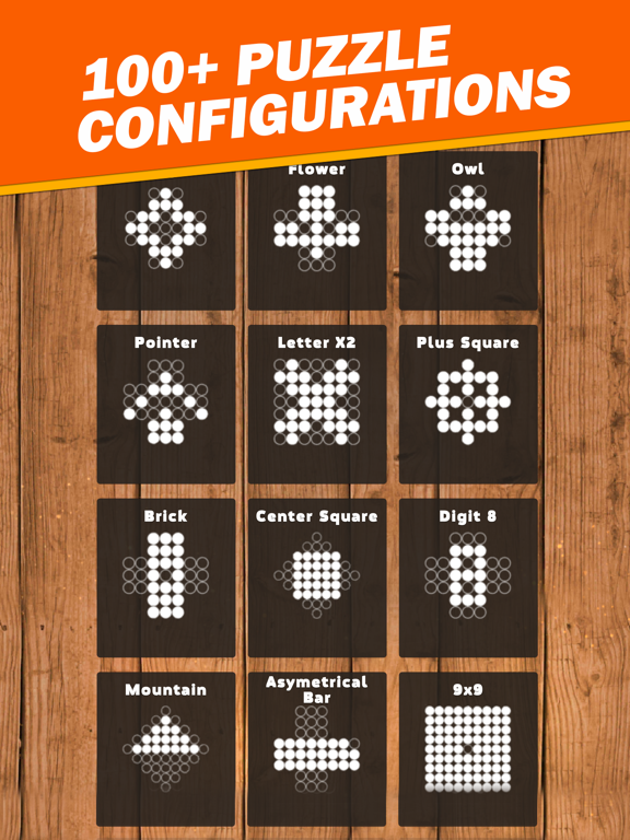 You can customize the look of the board by choosing from several peg styles and board backgrounds. The game keeps track of your best time so you can replay to see if you can beat your previous best times or with fewer moves. We designed the game for ease of use, with simple tap interface, playable with one-touch. No complicated swipe or multi-touch maneuvers. With the unlimited undo, you can always backtrack and try different strategies to win, or explore different paths to victory.
