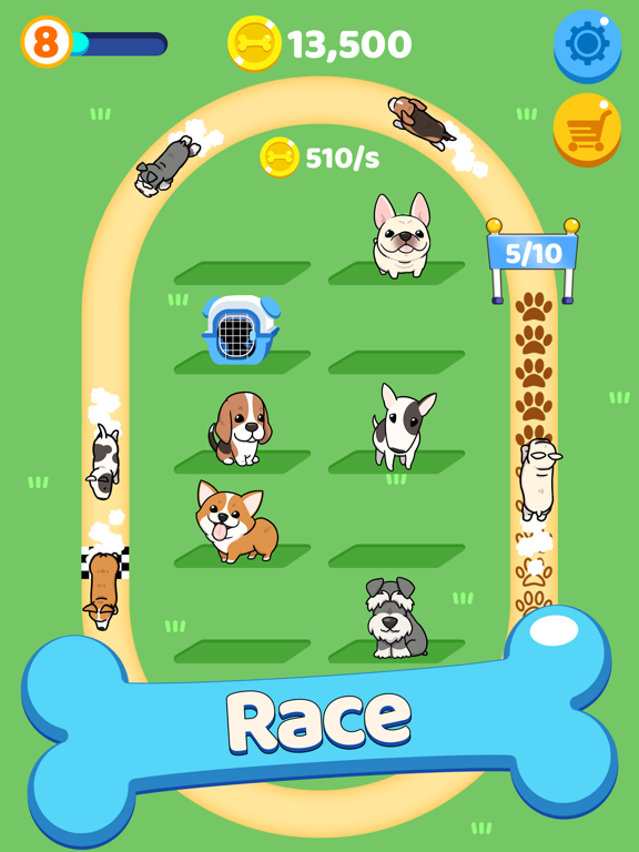 Merge your dogs, build the ultimate dog racing team and win the race!