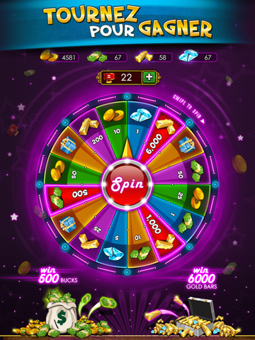 Tentez votre chance au Casino royal en jouant à Party Slots et à la Roue de la Fortune de Cléopâtre. Activez la machine à sous et la Roue de la Fortune grâce aux lingots d'or et aux jetons de roue se trouvant sur le plan de jeu du pousse-pièces. Remportez des richesses dignes d'un pharaon avec notre machine à sous dont le montant du jackpot s'élève à 10 000 pièces. La Roue de la Fortune de Cléopâtre vous offre quant à elle une chance de remporter 6 000 lingots d'or.