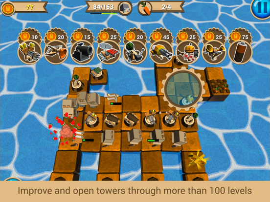 We invite you to join a trip to little islands of jolly forms. We will be thankful to you, the great strategist, if you help us to get rid of gluttonous rabbits. Our resources of carrots and flowers are drying up. You will get access to our best towers, the ones that shoot with popcorn, potatoes and watermelons. A scarecrow and a hand organ also ready to slow down the enemies.
